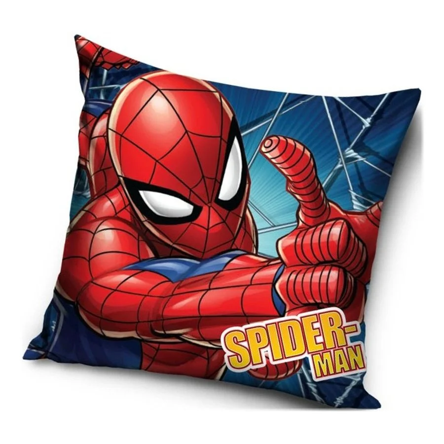 Povlak na polštářek Spider-Man. Tento povlak polštáře je vyroben z příjemně jemného nemačkavého materiálu a má zapínání na zip. Obě strany zdobí stejný motiv s obrázkem filmového a komiksového superhrdiny Spidermana.
