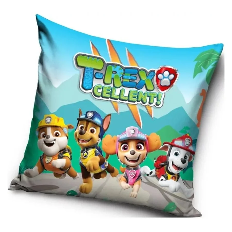 Povlak na polštářek Tlapková patrola - Paw Patrol - motiv T-Rex cellent! Tento povlak polštáře je vyroben z příjemně jemného nemačkavého materiálu a má zapínání na zip. Obě strany zdobí stejný motiv z příběhů, ve kterých se Tlapková patrola vrátila do pravěku zachraňovat dinosaury.