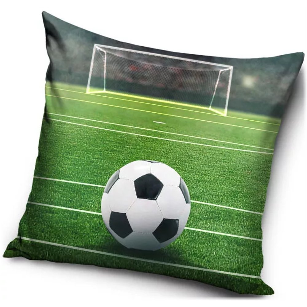 Povlak na polštářek s motivem fotbalového míče na hřišti. Je vyroben z jemného mikroplyše (velvet polyesteru) a má zapínání na zip. Je vhodný na polštáře o rozměru 40 x 40 cm.