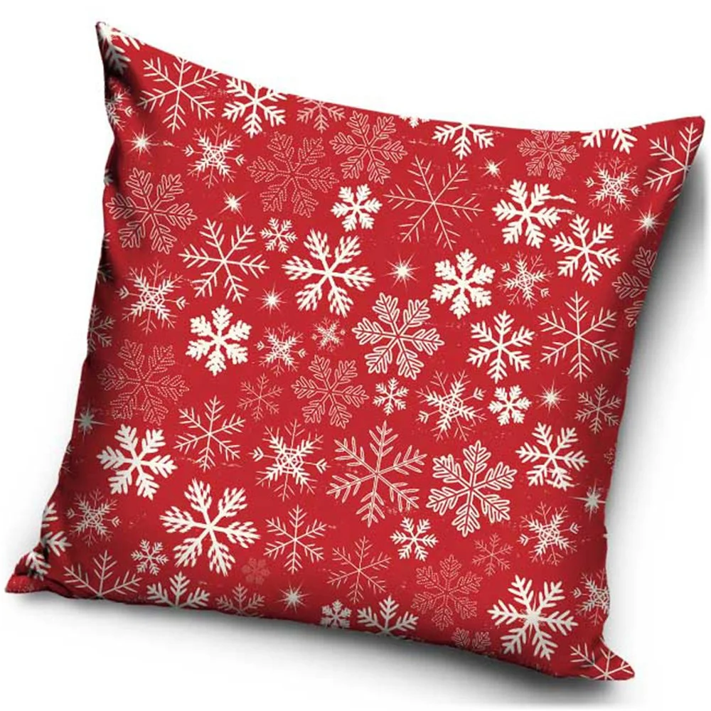 Červený vánoční povlak na polštář s bílými vločkami. Tento povlak polštáře je vyroben z příjemně ...
