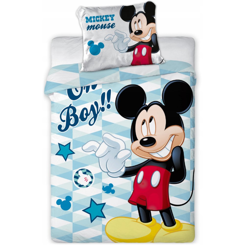 Ložní povlečení Mickey Mouse do malé dětské postýlky nebo kolébky. Zdobí ho obrázek legendárního myšáka Mickeyho ze studia Walt Disney. Souprava obsahuje povlak na přikrývku 100×135 cm a povlak na polštář 40×60 cm.