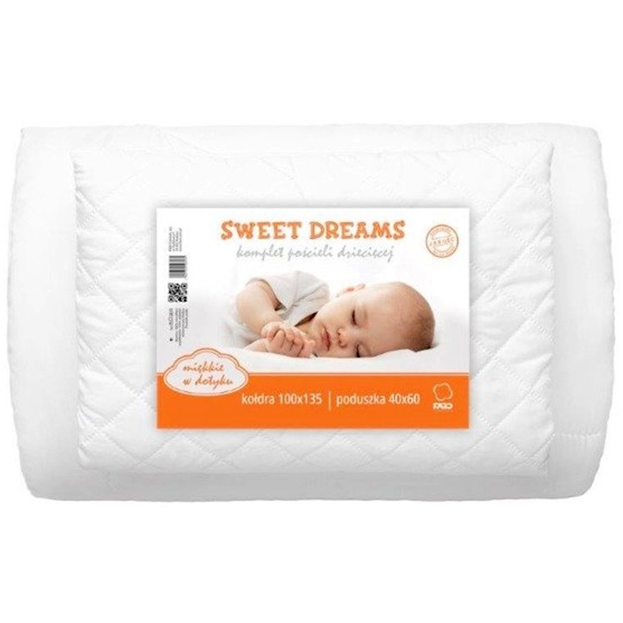 Tento set obsahuje 1x přikrývku 100 x 135 cm a 1x polštář 40 x 60 cm, tedy v rozměru do malé dětské postýlky, nebo kolébky.