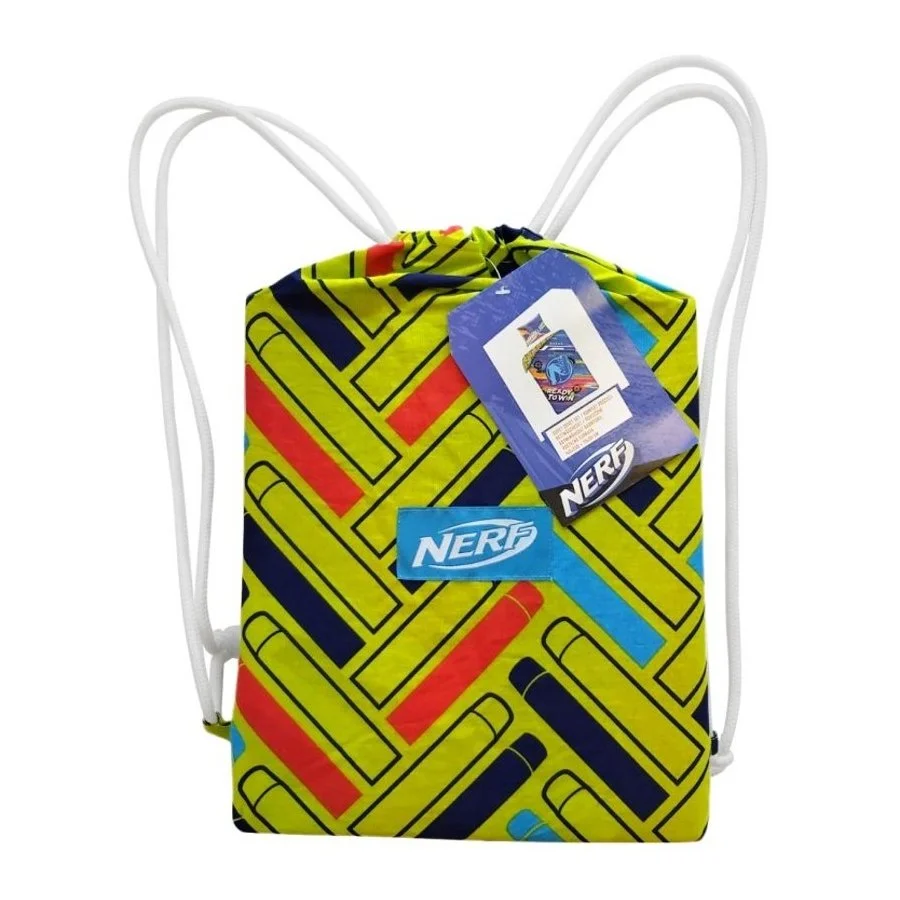 BONUS • Toto povlečení je zabaleno v bavlněné tašce se šňůrkami potištěné obrázky pěnových nábojů NERF, kterou může vaše dítě využít jako sáček na přezůvky, či na výtvarku, nebo jako vak na záda třeba na výlet.