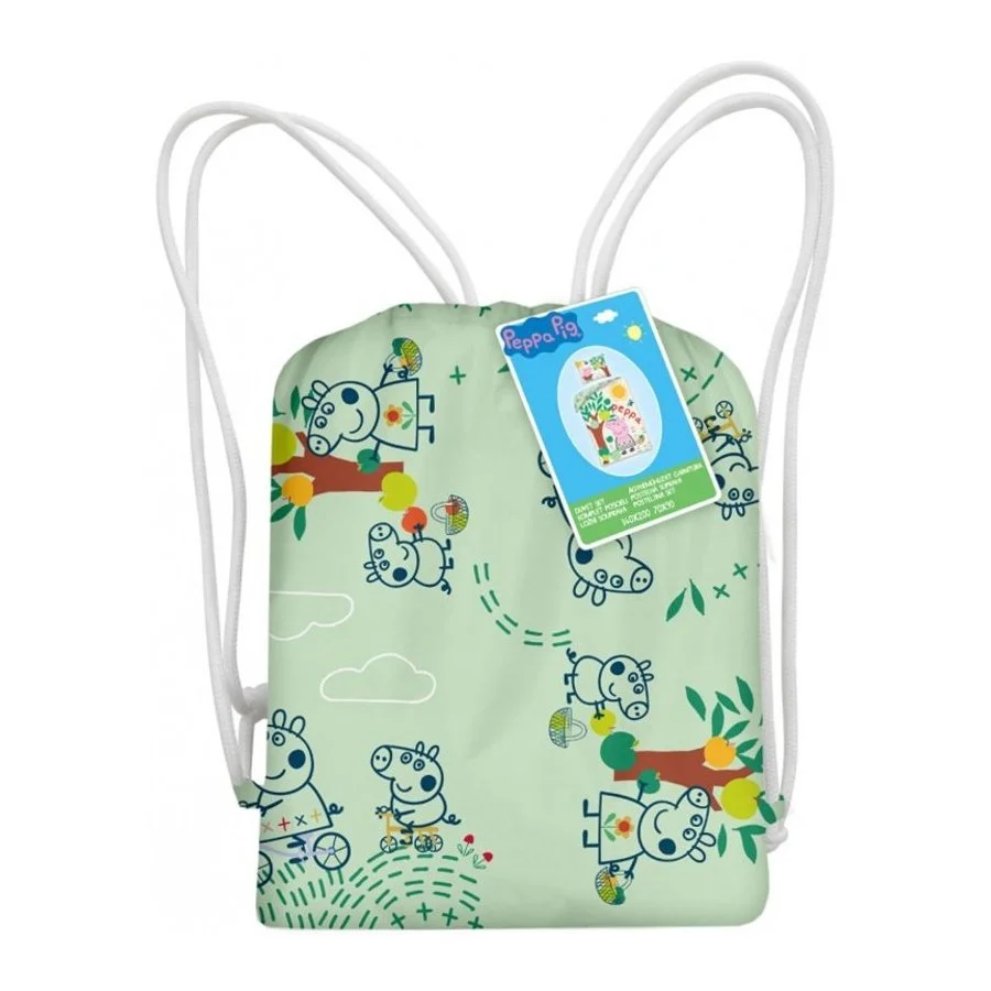 Pytlík na přezůvky / sportovní vak na záda Prasátko Peppa. Lícní stranu zdobí obrázek prasátka ...
