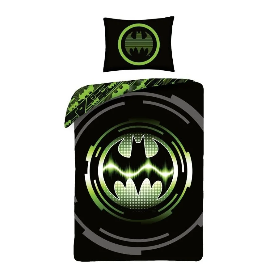 Ložní souprava Batman - motiv Kryptonite Energy. Toto oboustranné ložní povlečení je vyrobené ze 100% bavlny se zapínáním na zip. Lícní stranu povlečení na přikrývku zdobí znak komiksového a filmového superhrdiny Batmana, kterým probíjí zelená energie. Druhá strana povlaku na peřinu je černá s jemnými zelenými proužky a malými logy Batmana. Povlak polštáře je z obou stran stejný a je na něm opět znak Batmana, ale tak trochu jiný. Tato souprava ložního povlečení obsahuje 1x povlak na přikrývku 140 x 200 cm a 1x povlak na polštář 70 x 90 cm.