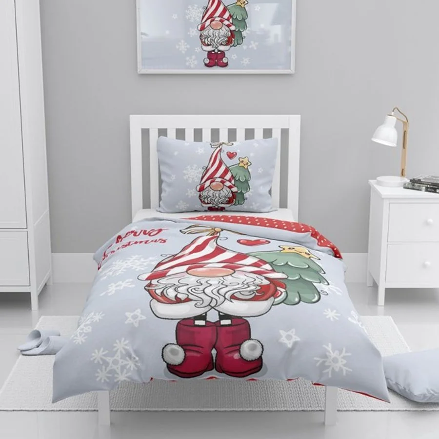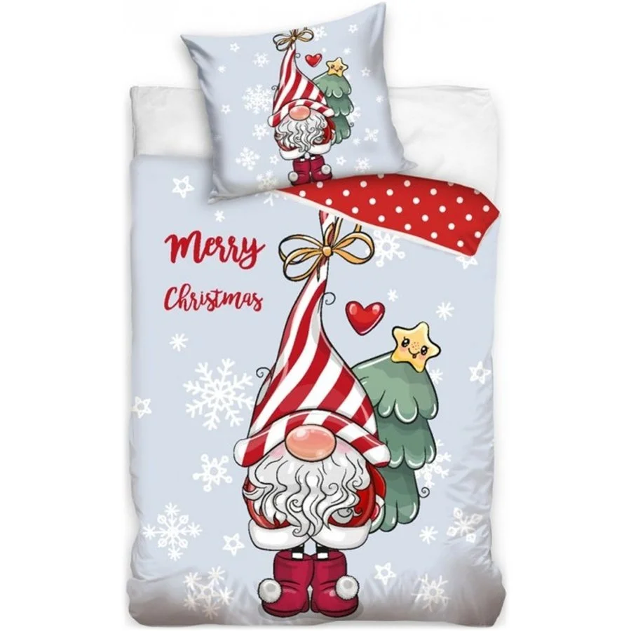 Bavlněné ložní povlečení s motivem Vánoční skřítek Rampenisse . Toto oboustranné povlečení je vyrobeno ze 100% bavlny prémiové kvality Renforcé se zapínáním na zip. Navíc je upraveno sanforizací, která zaručuje rozměrovou stálost. Lícní stranu povlaku přikrývky zdobí obrázek vánočního skřítka, který je známý zejména v severských zemích pro své kulišárny, které podle vyprávění o Vánocích tropí v domácnostech. Druhá strana povlečení na peřinu je červená s bílými puntíky. Povlak polštáře je z obou stran stejný a je na něm opět obrázek Vánočního skřítka. Tato souprava ložního povlečení obsahuje 1x povlak na přikrývku 140 x 200 cm a 1x povlak na polštář 70 x 90 cm.