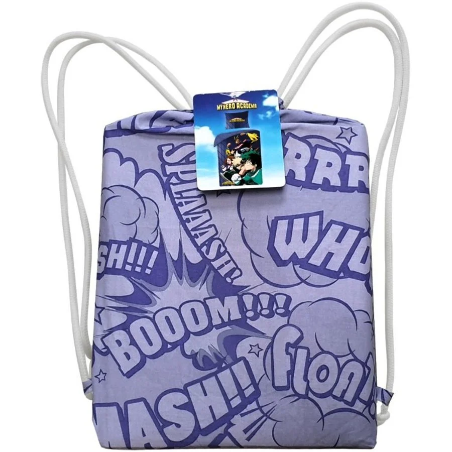 BONUS • Toto povlečení je zabaleno v bavlněné tašce se šňůrkami vyrobené ze stejné látky jako je druhá strana povlečení na přikrývku, tedy fialový sáček s komiksovým motivem. Tuto tašku pak můžete využít jako vak na záda, nebo sáček na přezůvky atd.