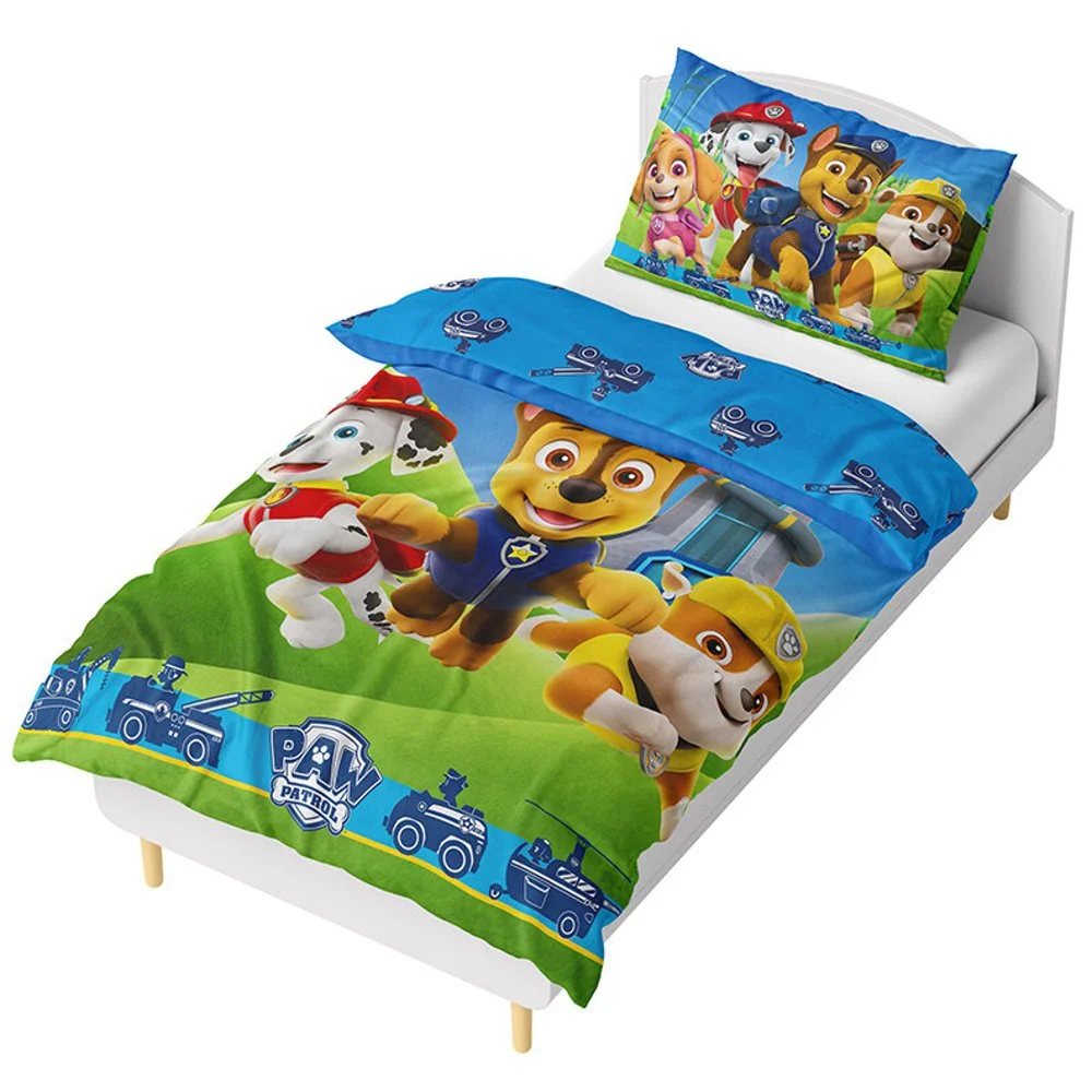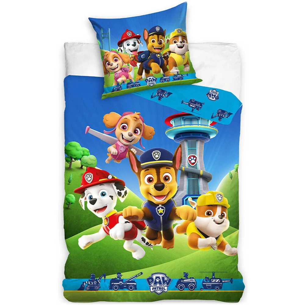 Na lícní straně přikrývky najdete oblíbené hrdiny Marshalla, Chase, Rubble a Skye, kteří běží čelit nové výzvě. Druhá strana je dekorována symboly jejich záchranářských vozidel na modrém podkladu. Povlak na polštář je z obou stran stejný a zdobí ho opět oblíbení záchranáři z Tlapkové patroly. Dopřejte svým dětem radost z usínání s jejich oblíbenými hrdiny!