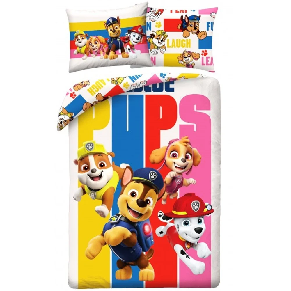Oboustranné bavlněné ložní povlečení Tlapková patrola – Paw Patrol - motiv Rescue Pups s oblíbenými hrdiny Chase, Marshall, Skye a Rubble. Je vyrobeno ze 100% bavlny se zapínáním na zip. Souprava na přikrývku 140x200 a polštář 70x90 cm.