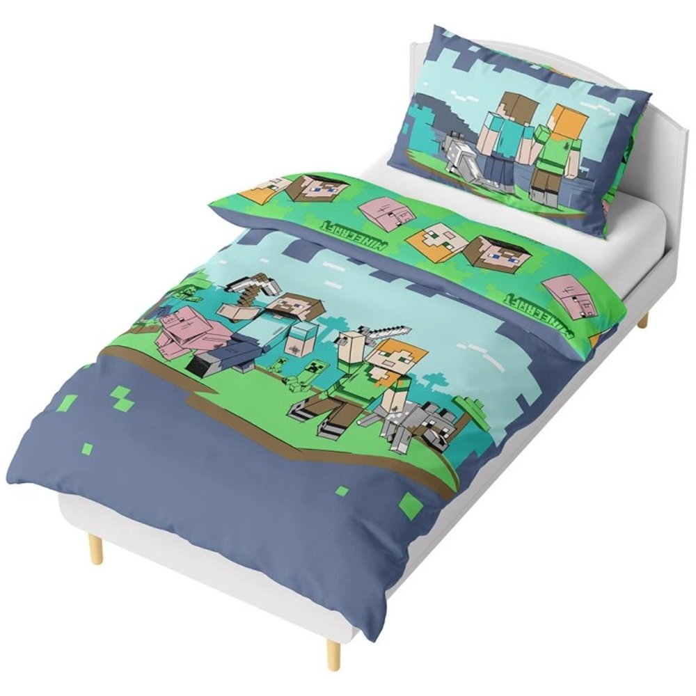 Tato souprava ložního povlečení Minecraft obsahuje 1× povlak na přikrývku 140×200 cm a 1× povlak na polštář 70×90 cm.
