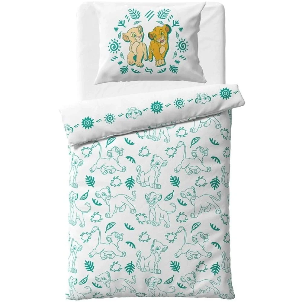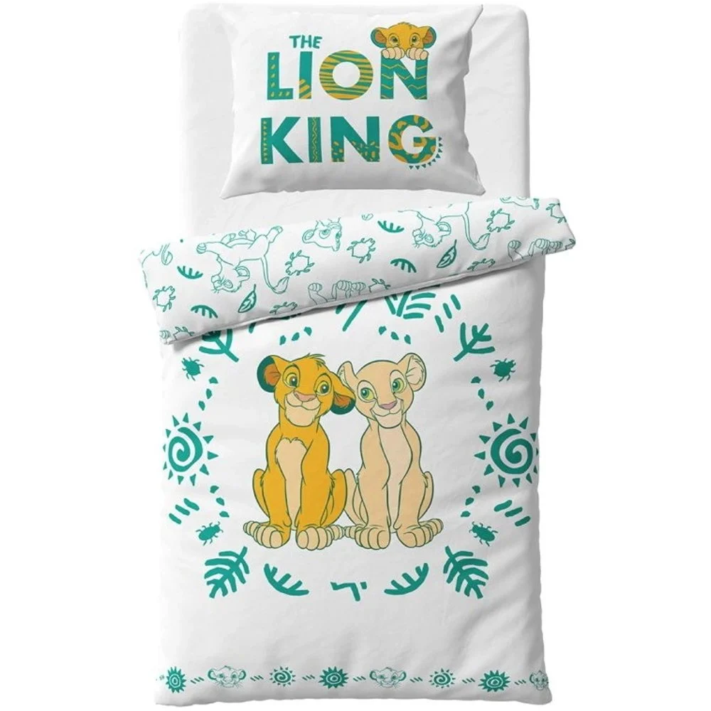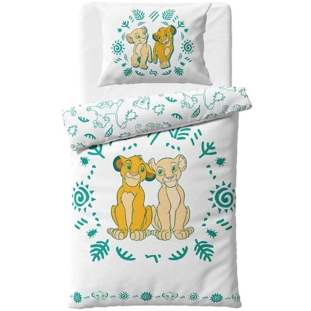 Tato souprava ložního povlečení Lví král obsahuje 1× povlak na přikrývku 140 × 200 cm a 1× povlak na polštář 70 × 90 cm.