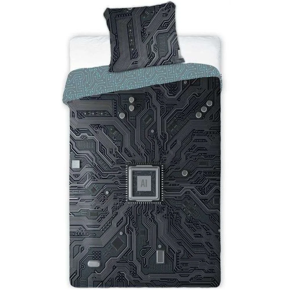 Oboustranné bavlněné povlečení s motivem AI Technologie a světélkujícím efektem. Rozměr 140×200 cm + 70×90 cm, zapínání na zip. Certifikace MADE IN GREEN by OEKO-TEX®.