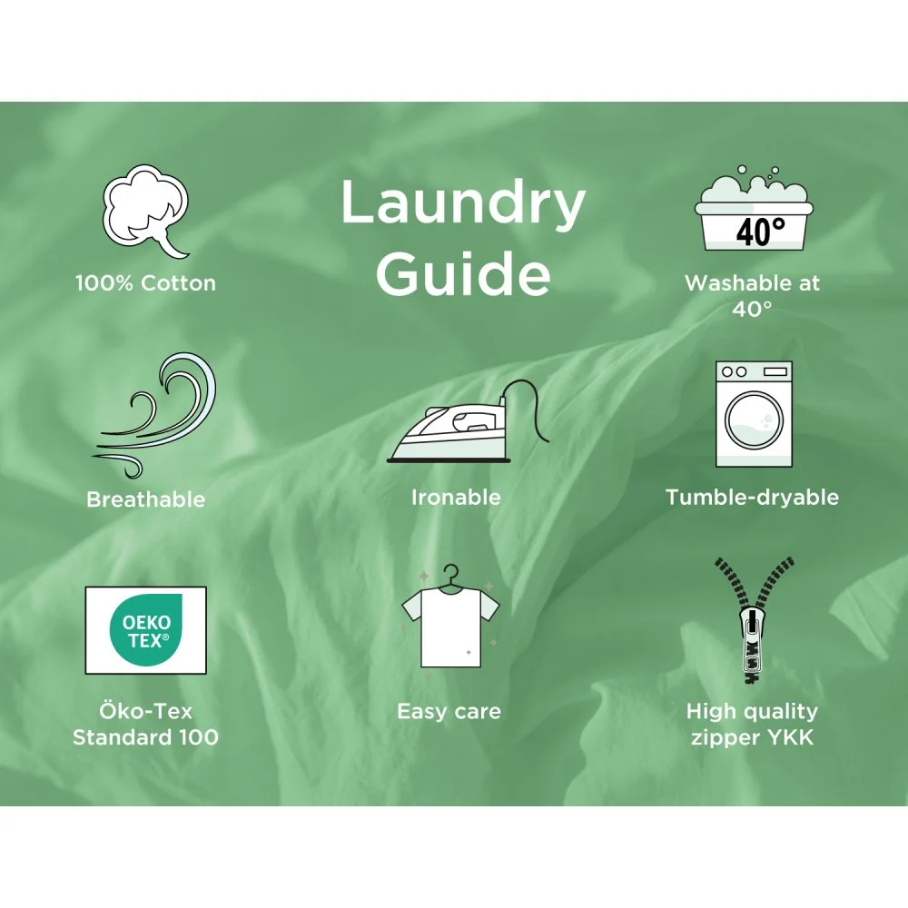 Nové povlečení před prvním použitím vyperte. Povlečení perte vždy z rubu, zapnuté a dle symbolů uvedených na obalu - viz níže. Nepoužívejte prací prostředky s obsahem bělících a rozjasňujících substancí. Doporučujeme odstřeďování při nižších otáčkách, aby nedošlo k trvalému poškození bavlněných vláken.