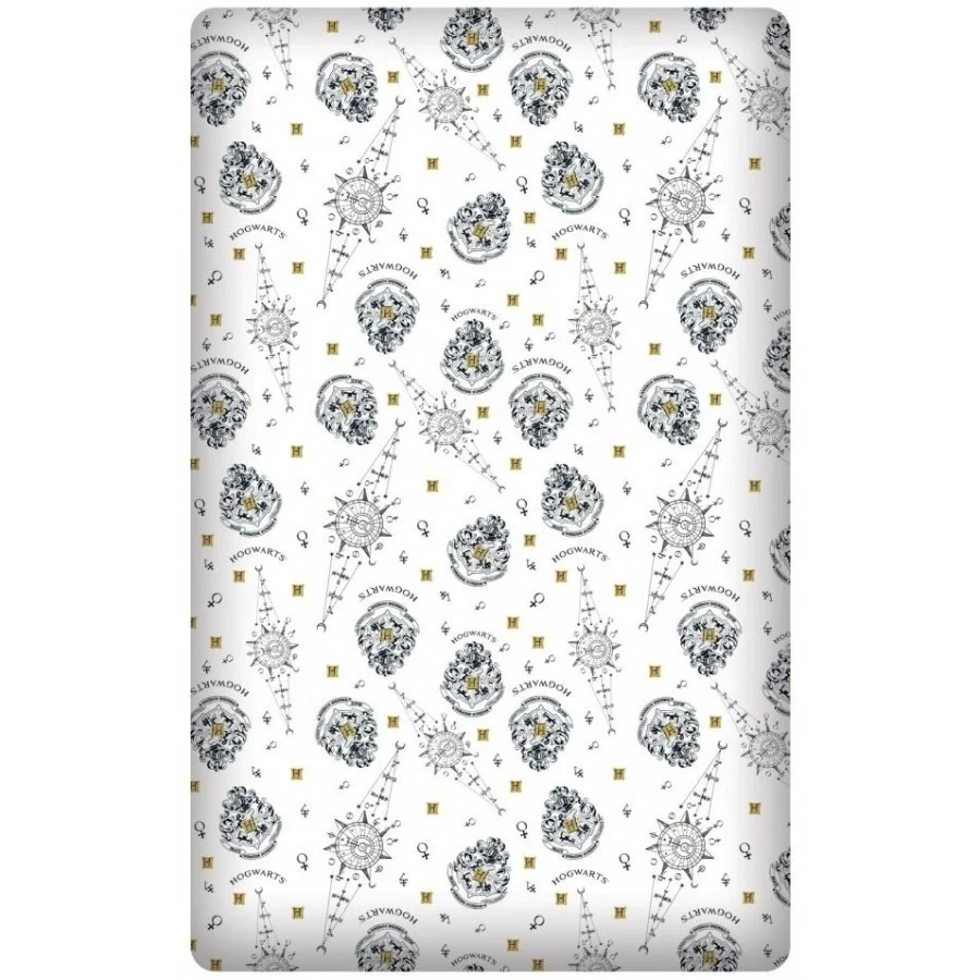 Prostěradlo Harry Potter na jednolůžko. Toto prostěradlo je vyrobeno ze 100% bavlny v rozměru pro matraci 200 x 90 cm s výškou do 25 cm. Zdobí ho malé erby školy čar a kouzel v Bradavicích a směrové růžice na bílém podkladu. Toto prostěradlo dokonale doplní ložní povlečení Harry Potter, které také naleznete v naší nabídce - ZDE.