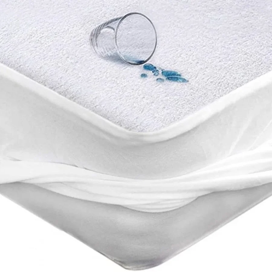 Bílé nepropustné froté prostěradlo na matraci 140 x 200 cm s polyuretanovým zátěrem. Prostěradlo ...