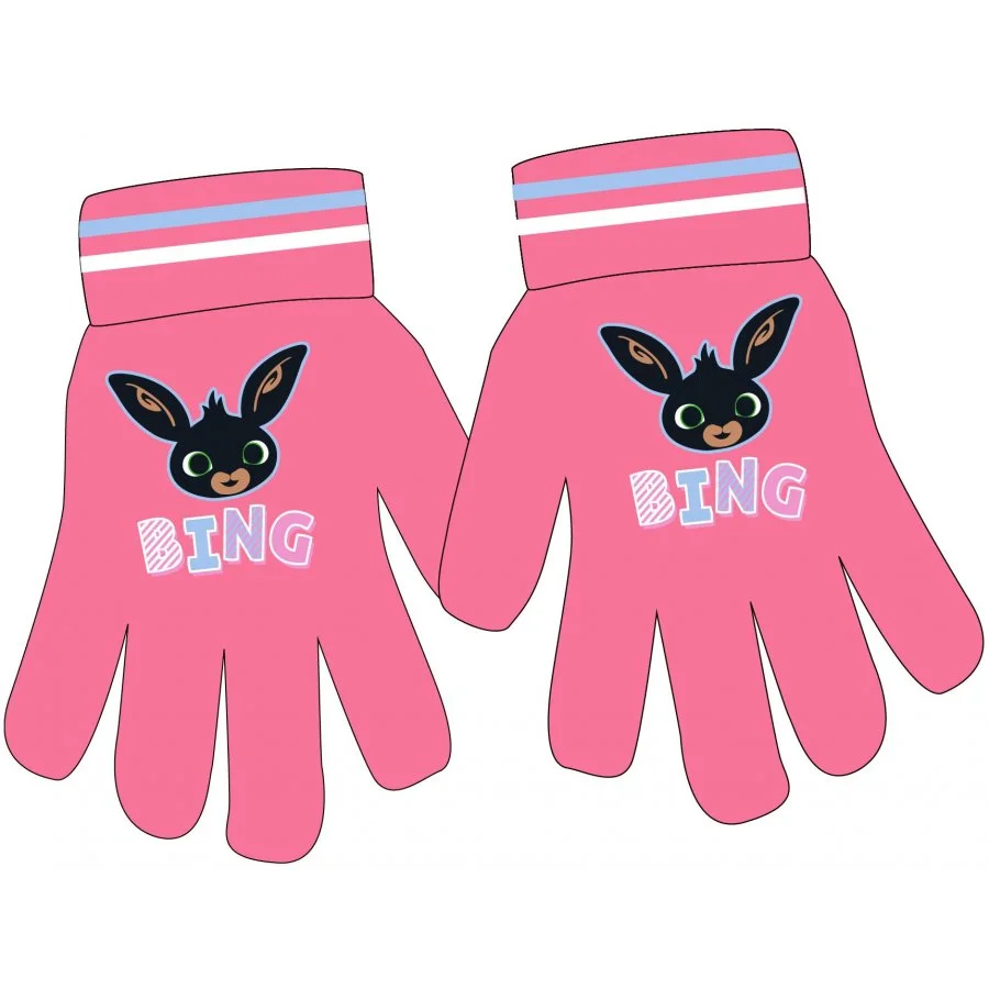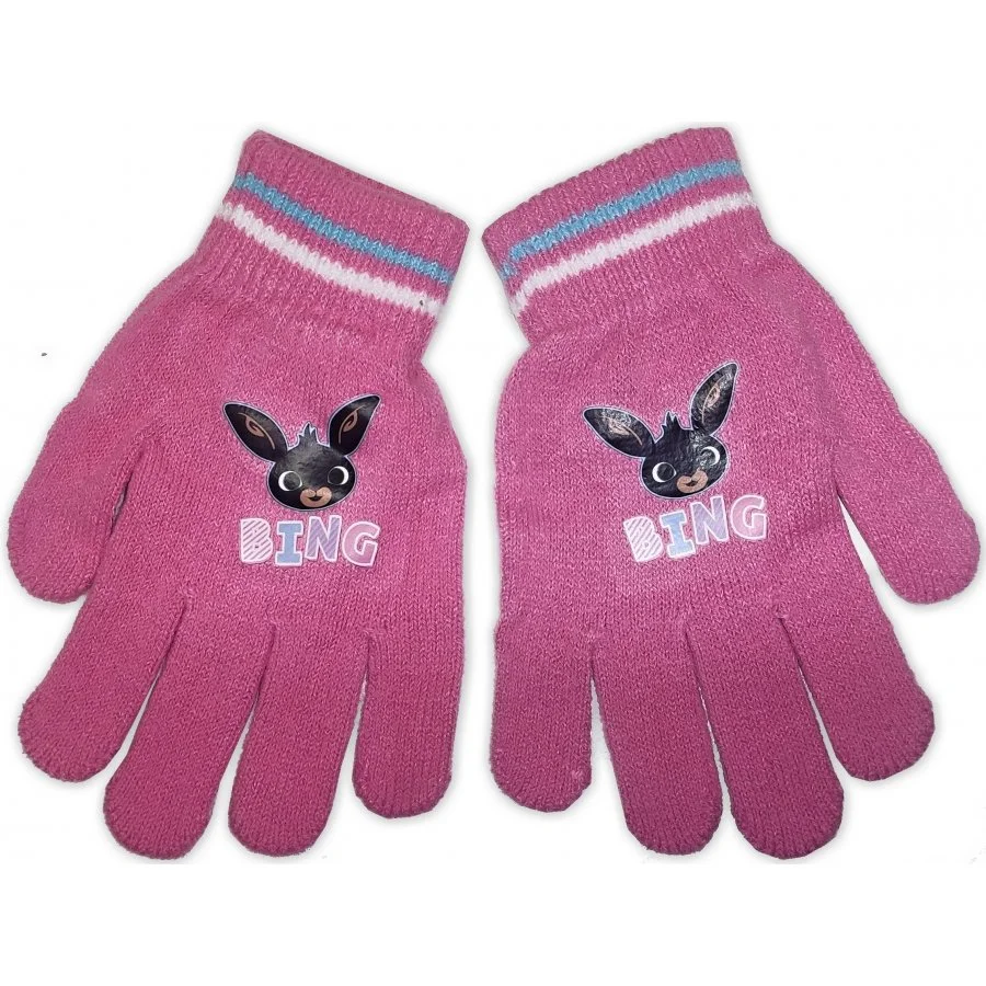 Dětské pletené pětiprsté rukavičky Zajíček Bing Bunny. Licenční rukavice s obrázkem zajíčka Binga na hřbetu ruky. Jsou vyrobeny z hřejivého akrylového úpletu růžové barvy. Tyto rukavice Králíček Bing dodáváme v jedné univerzální velikosti pro děti 3 - 6 let. Obrázek je ilustrační, barva nemusí odpovídat nastavení vašeho displeje, nebo monitoru.