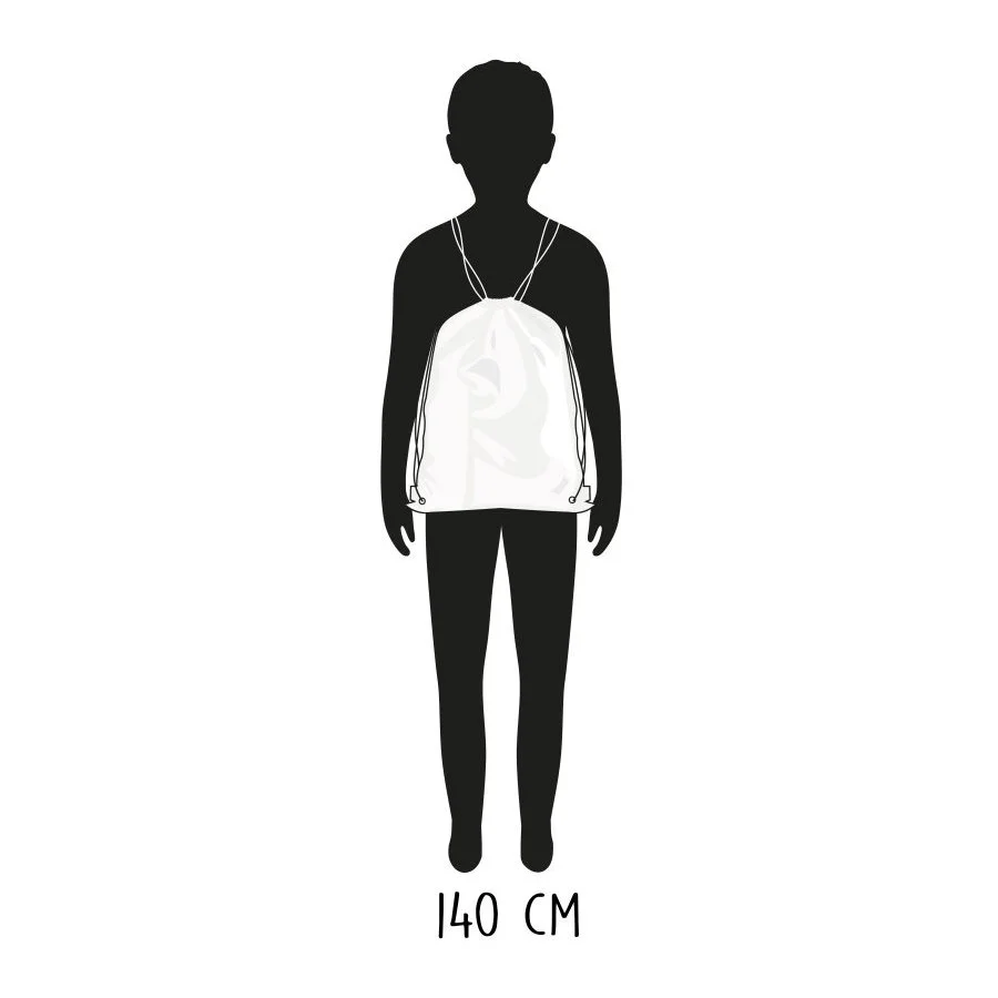 Poslední obrázky u produktu znázorňují poměr velikosti tohoto sportovního vaku ku postavě výšky 110 cm a 140 cm.