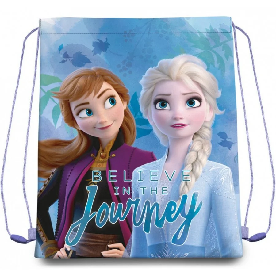 Pytlík na přezůvky / vak na záda Ledové království - Frozen - motiv Believe in The Journey. Díky uchycení šňůrek i ve spodních rozích jej lze nosit i na zádech jako pytel. Je ideální do školy, či do školky jako sáček na papuče, věci do tělocviku, nebo na výtvarnou výchovu, či jako sáček na cokoliv, popř. i jako vak na záda třeba na výlet. Rozměry tohoto vaku Ledové království jsou cca 30 x 40 cm.