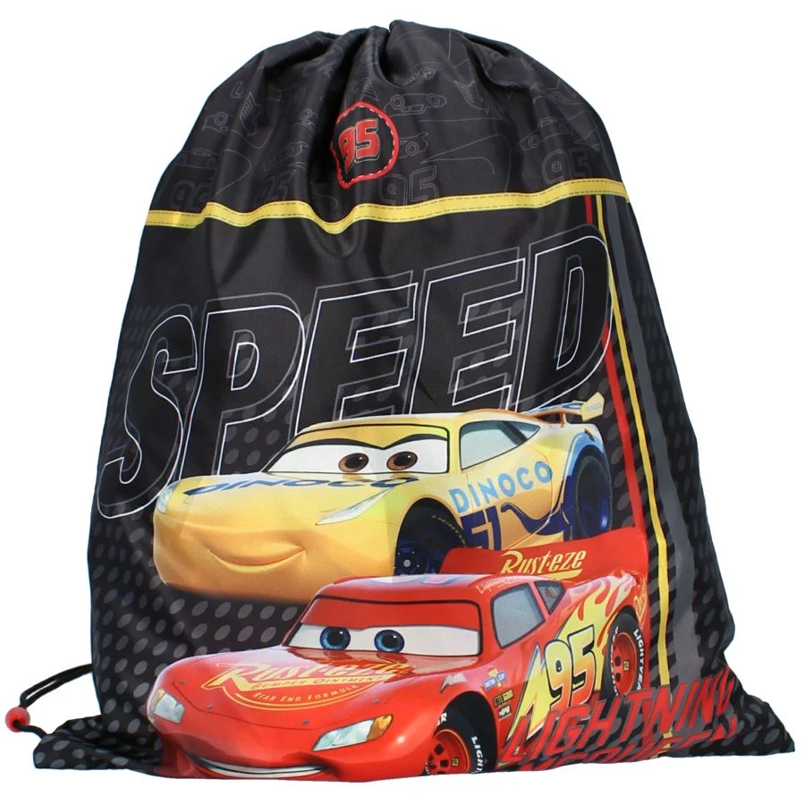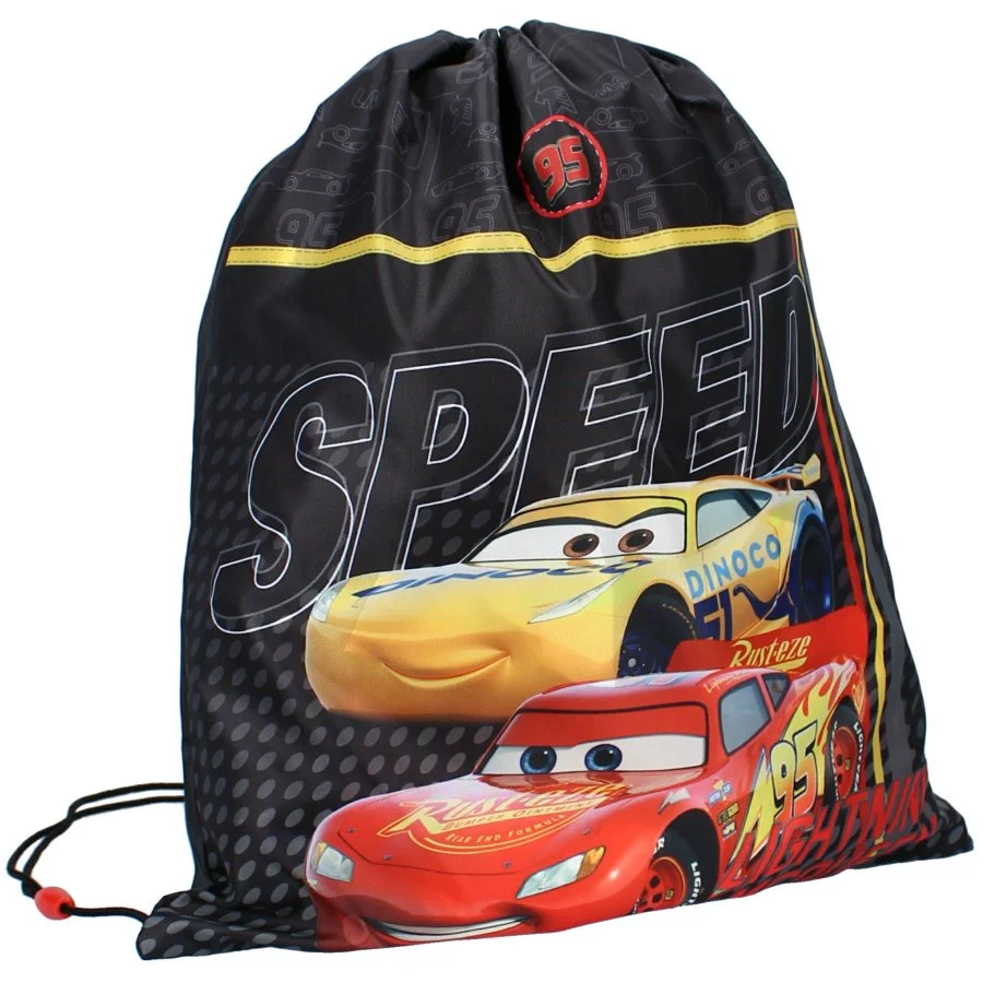 Pytlík na přezůvky / sportovní vak na záda Auta 3 - Cars 3 - motiv Speed. Lícní stranu zdobí obrázek závodníků Bleska McQueena a Cruz Ramirezové. Druhá strana je jednobarevná - černá. Díky uchycení šňůrek i ve spodních rozích lze tento vak nosit i na zádech. Je ideální do školy, či do školky jako sáček na papuče, věci do tělocviku, nebo na výtvarku, či jako vak na záda třeba na výlet. Jeho rozměry jsou cca 44 x 37 cm.