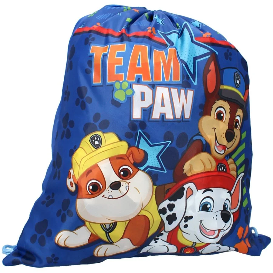 Pytlík na přezůvky / sportovní vak na záda Tlapková patrola - Paw Patrol - motiv Team Paw. Jednu stranu zdobí obrázek klučičích členů patroly Rubble, Chase a Marshalla, rubová strana je jednobarevná - modrá. Díky uchycení šňůrek i ve spodních rozích lze ... Celý text
