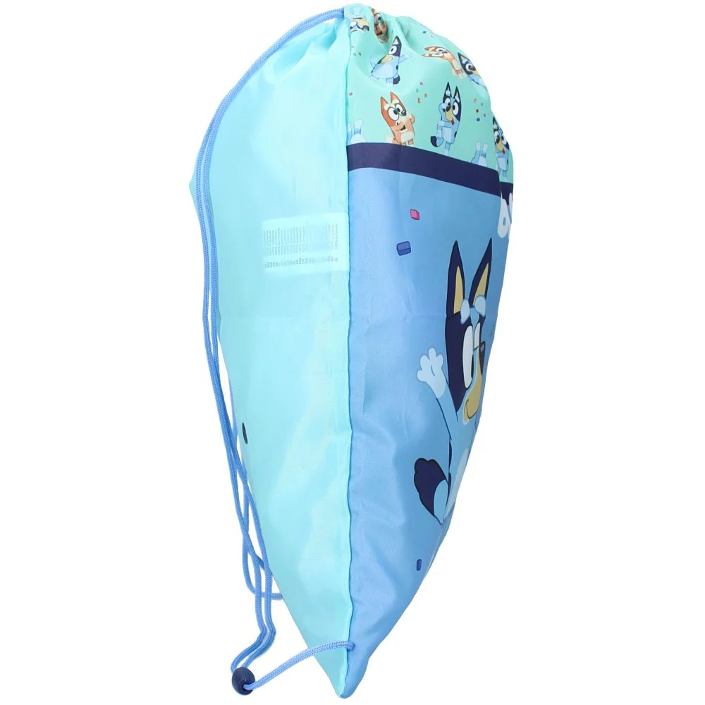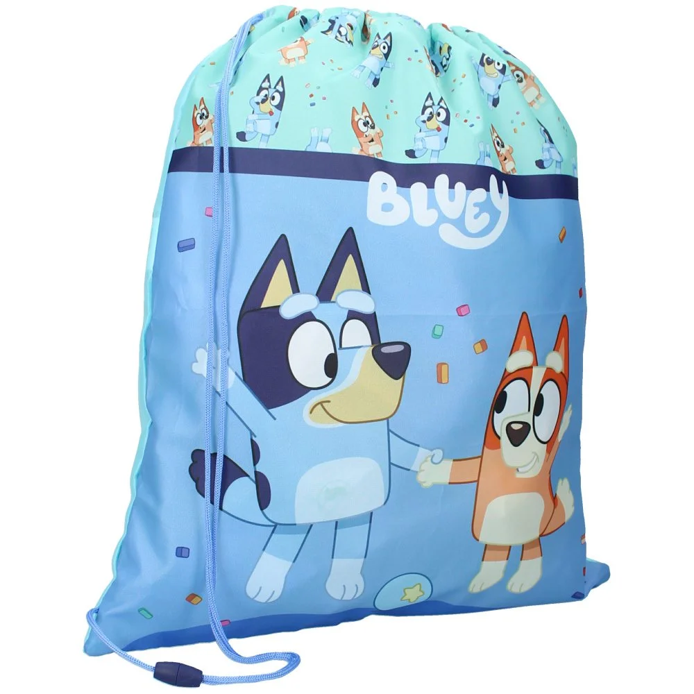 Sportovní vak na záda Bluey s obrázkem fenečky Bluey a její sestry Bingo. Ideální i jako pytlík na přezůvky, věci na tělocvik nebo výtvarnou výchovu. Rozměry cca 44 x 36 cm, objem cca 1,6 l.