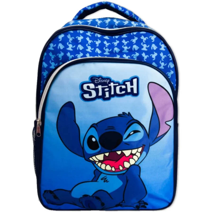 Stylový a praktický dětský batoh do školy Lilo & Stitch - motiv s obrázkem mimozemšťana Stitche. Tento batoh má dva prostorné oddíly a přední kapsu se zapínáním na zip, nastavitelné popruhy na záda s měkkou výstelkou a reflexními prvky, měkkou a prodyšnou výstelku na zádech, praktické boční kapsy na nápoj či jiné drobnosti a ucho na zavěšení, nebo nošení v ruce. Rozměry batohu jsou cca 42 x 32 x 15 cm. Tento batoh nejen skvěle vypadá, ale je také navržen s ohledem na pohodlí a bezpečnost vašeho dítěte. Dopřejte svému synovi radost z nošení batohu s jeho oblíbenou postavičkou Stitchem a zajistěte mu styl i funkčnost pro úspěšný školní rok!