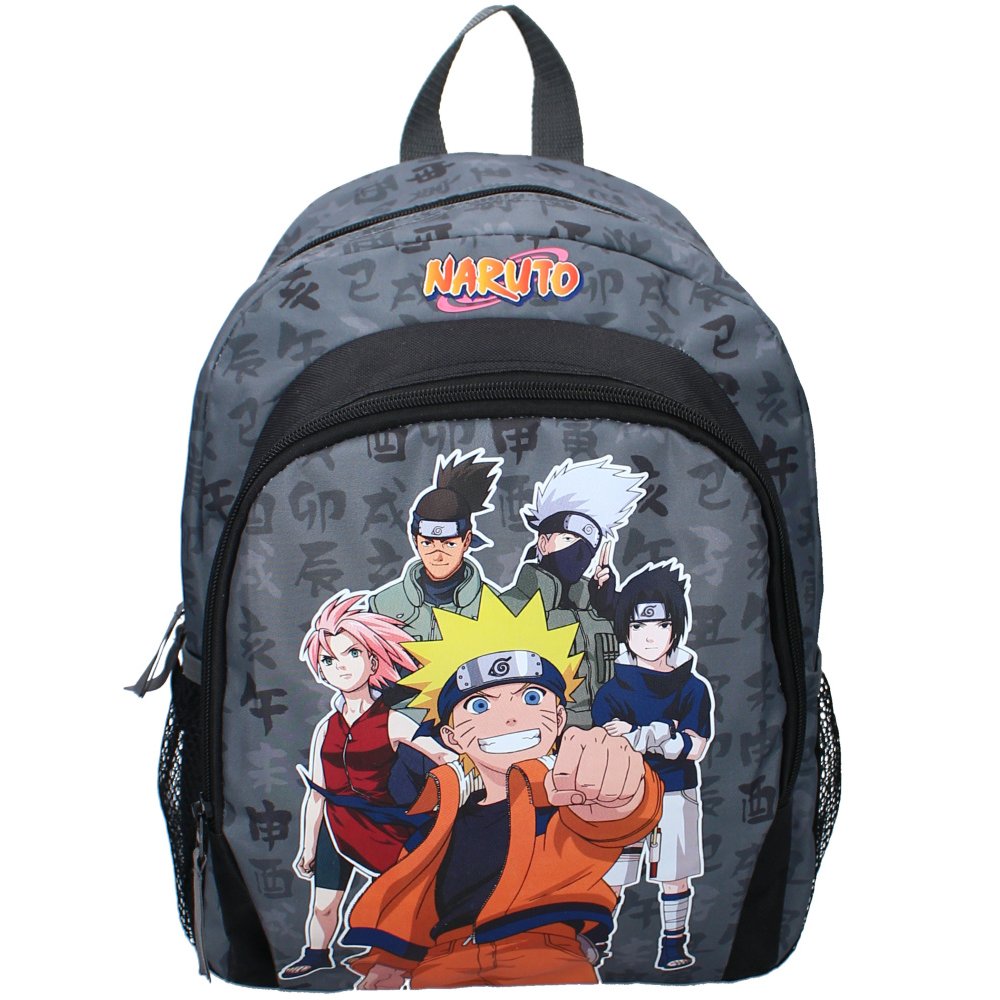 Chlapecký batoh Naruto s motivem Týmu 7. Má jeden hlavní prostor a přední kapsu na zip, nastavitelné polstrované popruhy, ucho na zavěšení nebo nošení v ruce a boční síťky na nápoj či jiné drobnosti. Rozměry cca 35 x 27 x 18 cm.