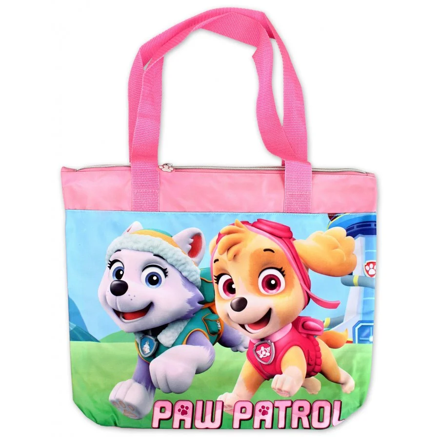 Dívčí plážová taška Tlapková patrola - Paw Patrol - s obrázkem stěňat Skye a Everest. Kabela má jednu kapsu se zapínáním na zip a dvě ucha na nošení, nebo přehození přes rameno. Rozměry této tašky na pláž jsou 40 x 27 x 11 cm.