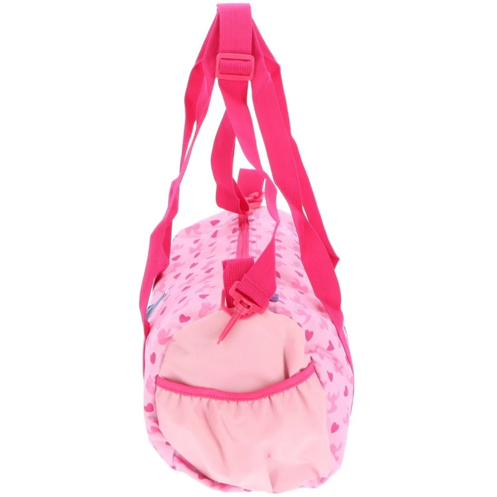 Dívčí sportovní taška s obrázkem Stitche z oblíbeného animovaného seriálu Lilo a Stitch. Má jeden prostorný hlavní oddíl na zip, boční kapsy na drobnosti a nastavitelný ramenní popruh. Díky uším ji lze nosit i v ruce. Rozměry 38 × 22 × 18 cm.