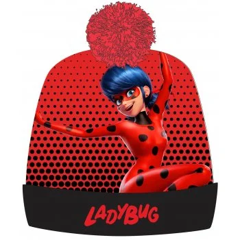 Dětská teplá čepice s bambulí Kouzelná beruška. Na přední straně čepice je obrázek Kouzelné ...