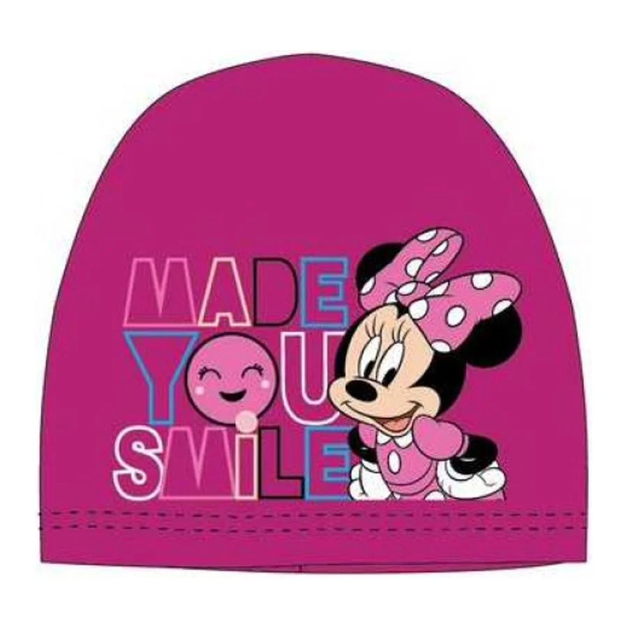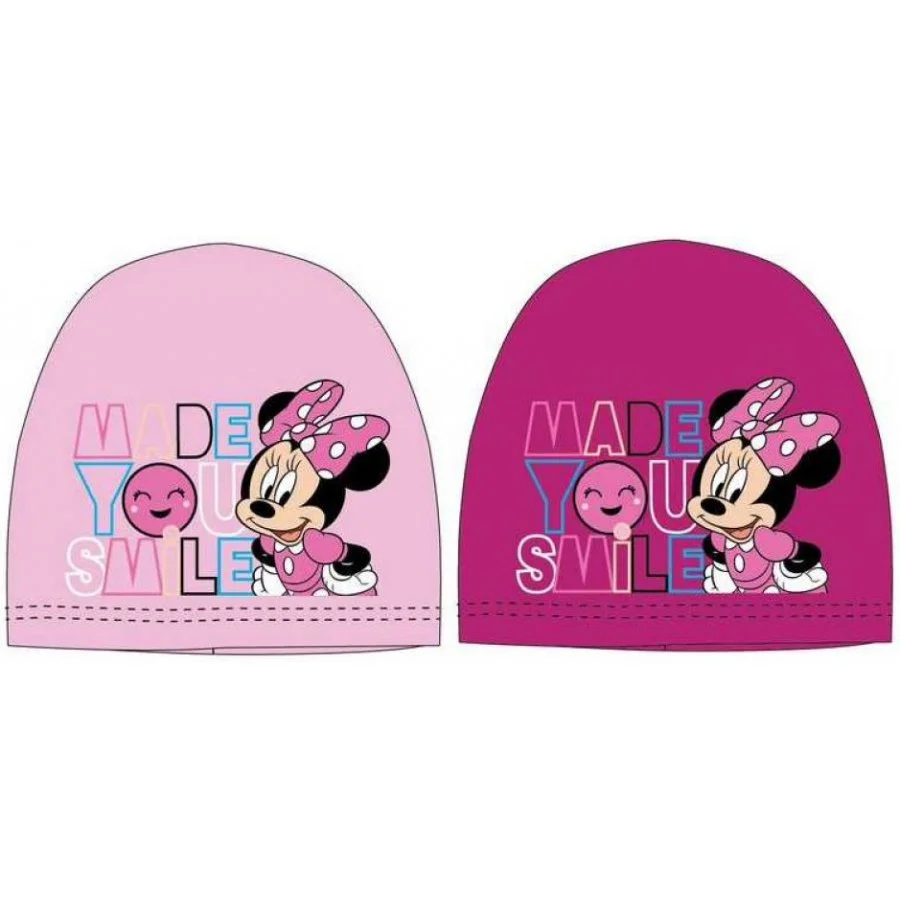 Dětská bavlněná jarní / podzimní čepice pro holky Minnie Mouse - Disney - motiv Made you smile. Tuto čepici dodáváme ve velikosti 52, nebo 54 a v růžové, či fialové barvě - viz. výběr velikosti a barvy níže.