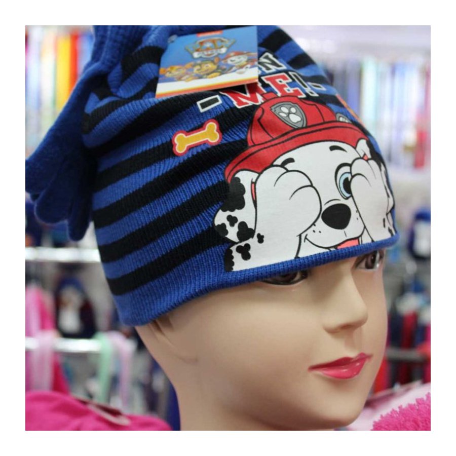 Souprava dětské teplé čepice a prstových rukavic Tlapková patrola - Paw Patrol. Čepici zdobí obrázek hasiče Marshalla a nápis Wasn't me, což je nejčastější výmluva, v překladu Já jsem to nebyl. Čepice je vyrobená z hřejivého akrylového zdvojeného úpletu v modro / černé, ... Celý text