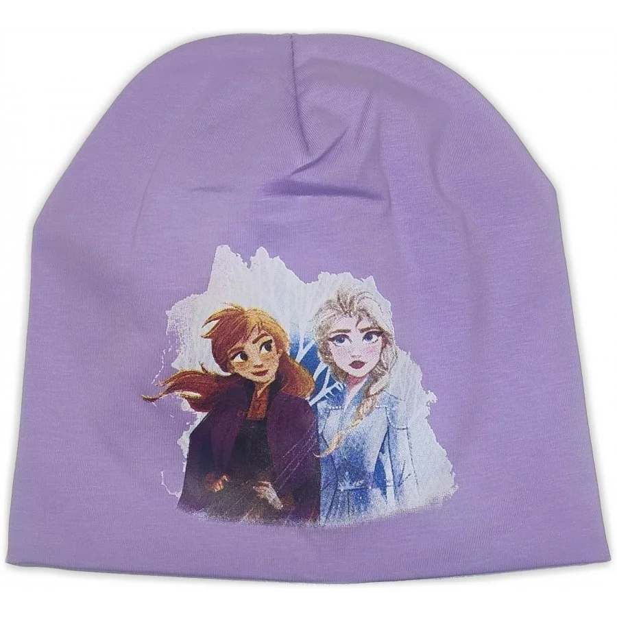 Dětská jarní / podzimní čepice pro holky Ledové království - Frozen - s obrázkem princezen Anny a Elsy. Tuto čepici dodáváme ve velikosti 52, nebo 54 a ve světle modré, či fialové barvě - viz. výběr velikosti a barvy.