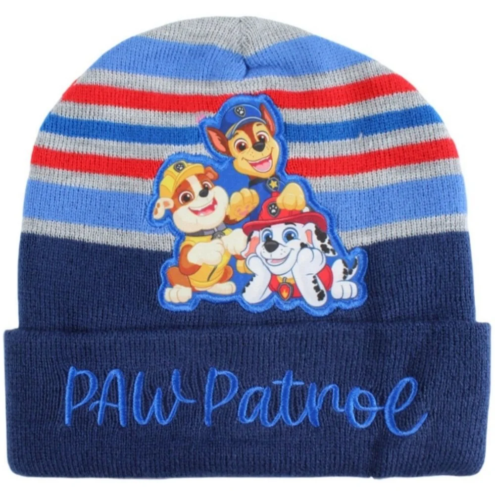 Dětská zimní čepice Tlapková patrola. Vyrobena z hřejivého akrylového úpletu s nášivkou oblíbených záchranářů a výšivkou Paw Patrol na lemu. Nabízíme ji ve dvou barevných kombinacích – světle nebo tmavě modré – v jedné univerzální velikosti pro děti přibližně od 4 do 8 let.