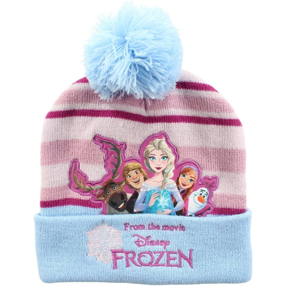 Dětská zimní čepice Ledové království. Vyrobena z hřejivého akrylového úpletu s nášivkou přátel z Ledového království a výšivkou loga Frozen na lemu. Nabízíme ji ve dvou barevných kombinacích – sytě růžovou nebo světle modrou – v jedné velikosti 54, tedy pro holky přibližně od 7 do 10 let.