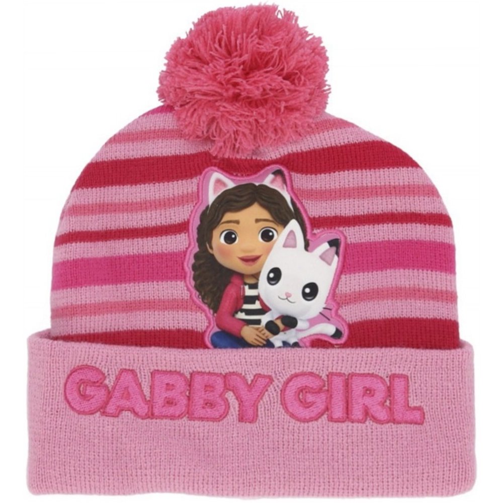 Dětská zimní čepice Gabby’s Dollhouse. Je vyrobena z hřejivého akrylového úpletu, zdobí ji nášivka Gábi s jejím kočičím kamarádem a výšivka Gabby Girl na lemu. Nabízíme ji ve dvou barevných kombinacích – ve světlejší nebo tmavší růžové – v jedné velikosti 54, která je vhodná přibližně pro dívky od 7 do 10 let.