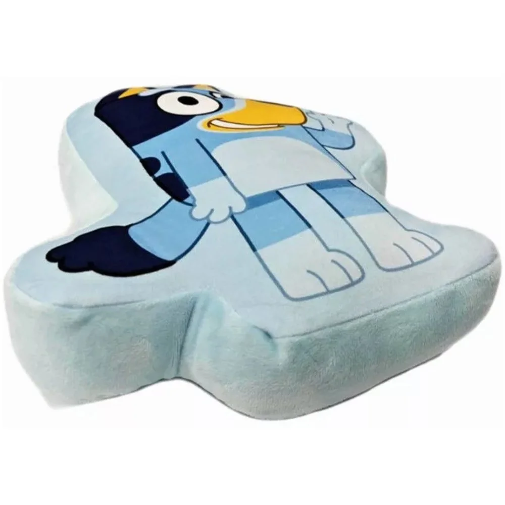Tvarovaný 3D polštář Bluey s motivem oblíbeného australského seriálu. Jemný mikroplyš a veselý design fenky Bluey na přední straně potěší všechny malé fanoušky i fanynky. Zadní strana je světle modrá. Polštářek má rozměry přibližně 21 × 36 cm a skvěle poslouží na mazlení i jako dekorace.