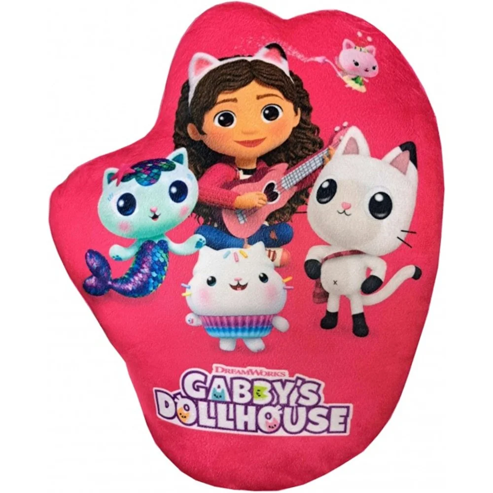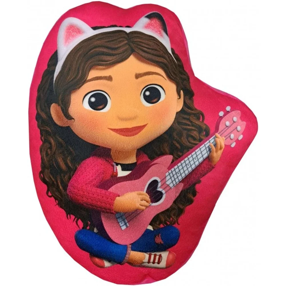 Tvarovaný 3D polštářek Gabby's Dollhouse. Jednu stranu zdobí veselý obrázek Gábinky s ukulele, na druhé je Gábi se svými kočičími přáteli. Povrch je z jemného mikroplyše, který je příjemný na dotek. Polštář má rozměry cca 38×32 cm a je ideální na mazlení i jako dekorace do dětského pokojíčku.