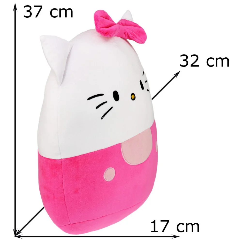 Tvarovaný 3D squish polštář Hello Kitty. Super měkký, elastický a mačkací plyšový polštářek na mazlení, hraní nebo jako roztomilá dekorace do dětského pokojíčku. Rozměry jsou cca 37×32×17 cm.
