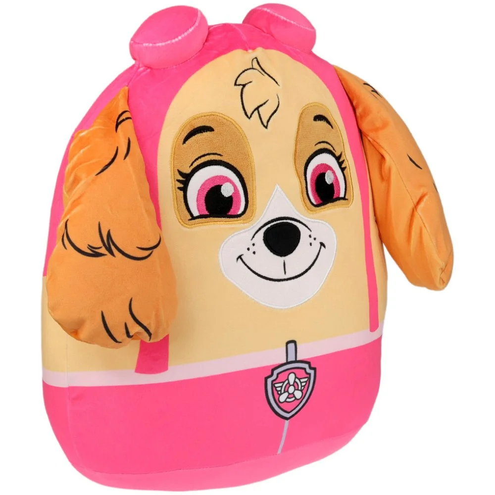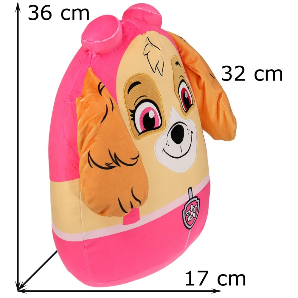 Tvarovaný 3D squish polštář Paw Patrol - motiv Skye. Super měkký, elastický a mačkací plyšový polštářek na mazlení, hraní nebo jako roztomilá dekorace do dětského pokojíčku. Rozměry jsou cca 36×32×17 cm.