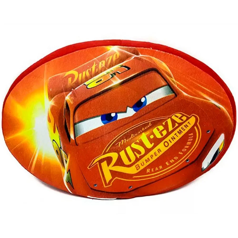 Tvarovaný 3D polštářek Auta v oválném tvaru. Přední stranu zdobí motiv závodníka Bleska McQueena, druhá strana je jednobarevná červená. Povrch polštářku je z jemného veluru, takže je ideální na mazlení i hraní. Rozměry jsou přibližně 42 x 24 cm.