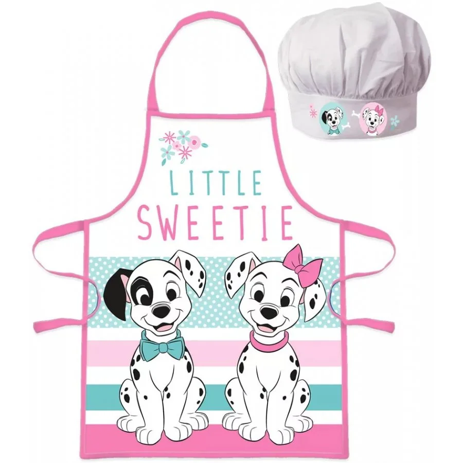 Set dětské zástěry a kuchařské čepice 101 dalmatinů - Disney. Zástěra je vhodná pro malé kuchaře a kuchařky, ale i do výtvarné výchovy, do keramiky, či jako pracovní zástěra k různým školním i mimoškolním pracovním činnostem. Tento kuchařský set je vhodný pro děti 3 - 8 let. Výška zástěry je cca 52 cm, její šířka je cca 42 cm. Vše lze prát při teplotě do 60°C.